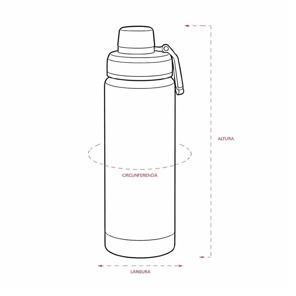 Garrafa térmica em inox 304 com capacidade máxima de até 600ml. Conta com estrutura de parede dupla e vedação a vácuo para manter a temperatura de líquidos conservada por mais tempo. Possui tampa rosqueável em plástico com protetor para o bocal e alça para transporte. Acompanha protetor antiderrapante para a base.